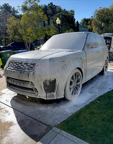 Exterior: hand-applied wax, aerosol soap, insect removal, window cleaning, cleaning of gas cap covers, tire and wheel cleaning, tire polishing, drying with towels, paint sealant, cleaning of the inner fenders.