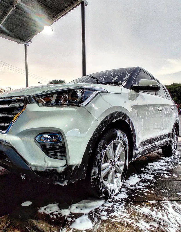 Exterior: Hand-applied wax, aerosol soap, insect removal, window cleaning, cleaning of gas cap covers, tire and wheel cleaning, tire polishing, drying with towels, cleaning of inner fenders, engine cleaning, hand wax or aerosol sealant (paint protection lasts 4 months). Interior: Dust removal, window cleaning, deep vacuuming, air freshener, surface cleaning, surface protection, door panel cleaning, surface hydration, trunk vacuuming (if unoccupied) and deep dashboard cleaning.